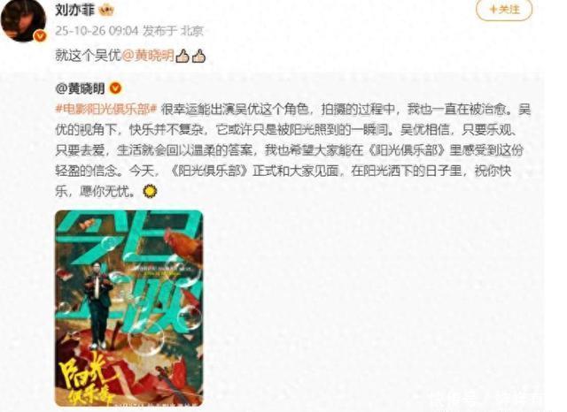 为了很好的宣传自己的影片,他发动了半个娱乐圈的人来造势, 抛开罗云熙、肖战等流量小生不谈,他很直还让“神仙姐姐”刘亦菲都来为他宣传, 可效果依旧微乎其微,愿意买单的网友少之又少! 《下一台台风》被抵制 10月25日当天,影院一共有两部影片上映, 除了黄晓明的《阳光俱乐部》,还有张子枫妹妹的《下一个台风》, 虽然两部影片题材以及演员都不一样,但是结果却是一样的,都扑了!