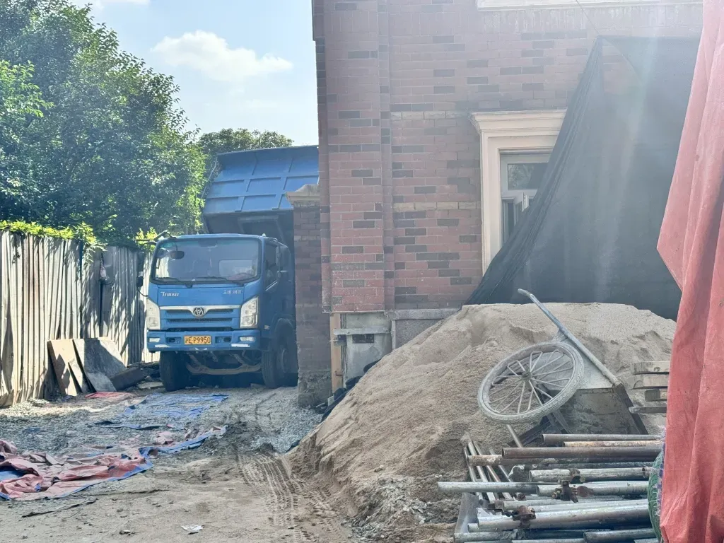 11月12日起,孙女士通过社交平台发声。13日,城管、派出所、物业等工作人员再次来到小区内,叫停施工现场,要求业主立即回填、恢复原状。14日,澎湃新闻实地探访,发现施工现场门口有城管人员看守。工作人员表示,今日开始进行回填工作,当天中午12时20分左右,记者见到第一辆运送货车进入院内。