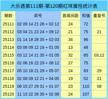 第25121期大乐透特征数据统计分析