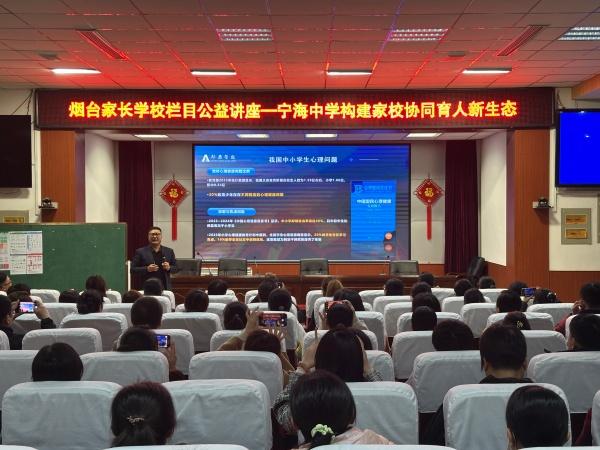 胶东在线11月17日讯(通讯员 曲露露 实习编辑 单煜媛)近日,由烟台家长学校栏目主办的公益讲座在宁海中学会议室正式举行。本次讲座特别邀请CCTV-7《对话星》栏目特邀嘉宾、郑面管教家庭教育研究院院长、中国家庭教育专业委员会副理事长郑喜峰,为宁海中学的数百名家长带来了一场题为《同心同行,构建家校协同育人新生态》的精彩分享。